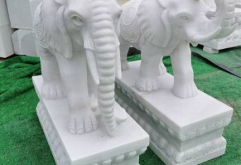 漢白玉石雕小象完美裝點(diǎn)公司庭院門口