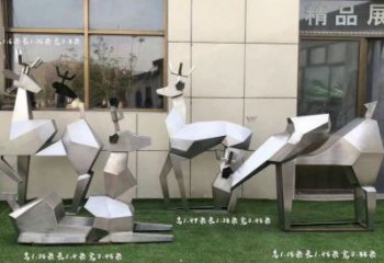不銹鋼鹿雕塑景觀拉絲切面噴漆創意戶外幾何公園裝飾