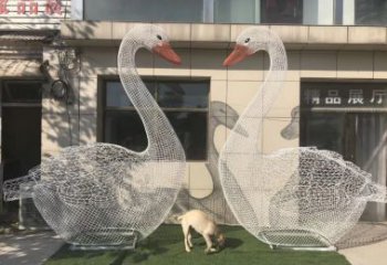 不銹鋼鏤空大型愛心天鵝雕塑