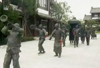 玻璃鋼仿銅民俗情景雕塑