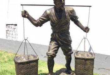 玻璃鋼仿銅民俗挑扁擔(dān)古人雕塑落地小品