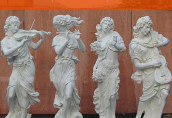 玻璃鋼漢白玉仿歐式人物吹拉彈唱擺件