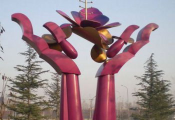 不銹鋼方手型雕塑——裝點花園廣場
