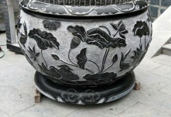 中式別墅石灰浮雕荷花圓形花盆水缸