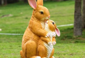 黃色兔子母子雕塑,精美玻璃鋼動物園裝飾