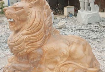 晚霞紅石雕大型仿真獅子雕塑