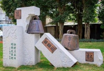 這是校園景觀雕塑,融合石雕與銅雕,以《論語》等儒學(xué)元素為內(nèi)容,通過文字、符號組合,展現(xiàn)儒學(xué)文化,營造文化育人氛圍。